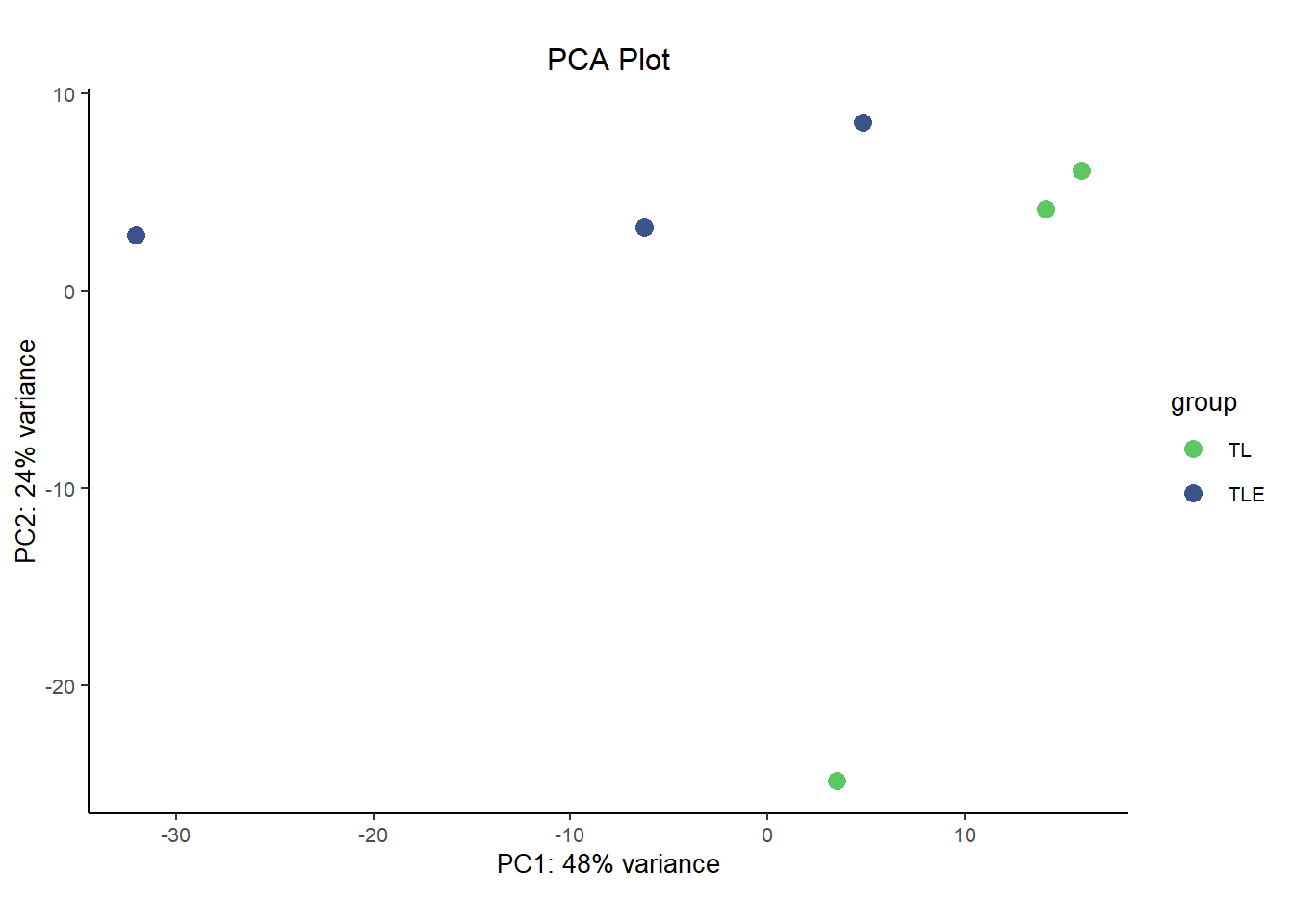 The dataset consists of bulk RNA-Seq reads from three temporal lobe control post-mortem samples (TL), and three temporal lobe with epilepsy patient samples (TLE). In the original paper, four populations of cells were isolated from the samples via Fluorescence Activated Nuclei Sorting (FANS), one of those populations was the neurons and those are the samples that I’m working with here.